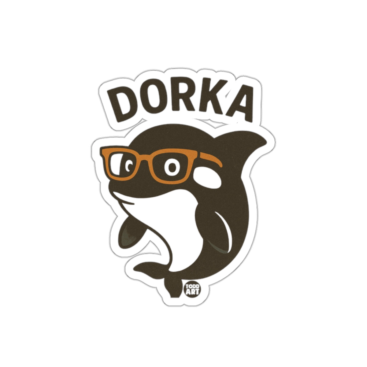 Add some fun to your items with this cute "Dorka" orca whale wearing glasses sticker! Perfect for laptops notebooks or water bottles. Makes a unique statement. Get your Dorka Stickers now!