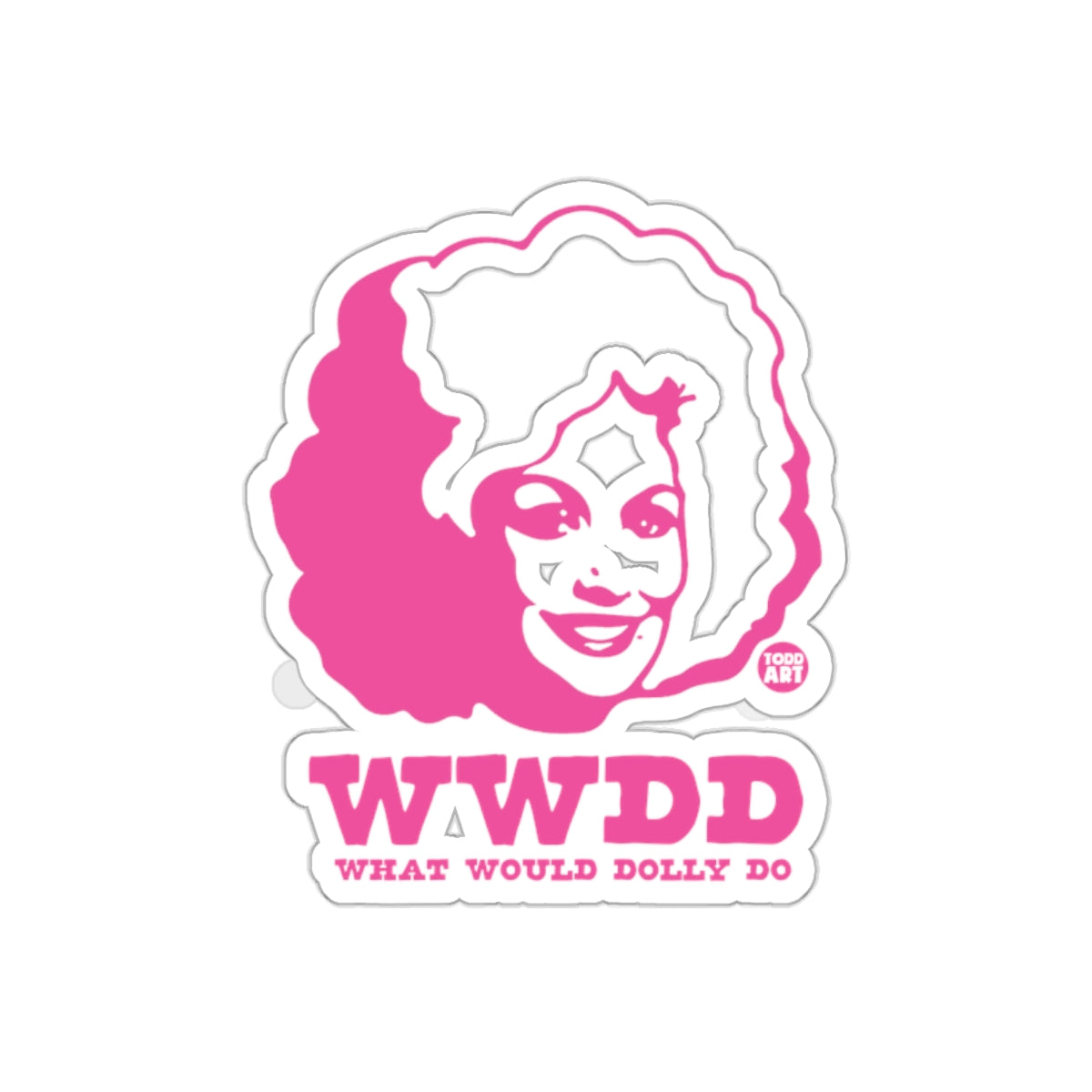 Express your admiration with this Dolly Parton inspired sticker. This unique design featuring Wwdd What Would Dolly Do will add a personal touch to your belongings.
